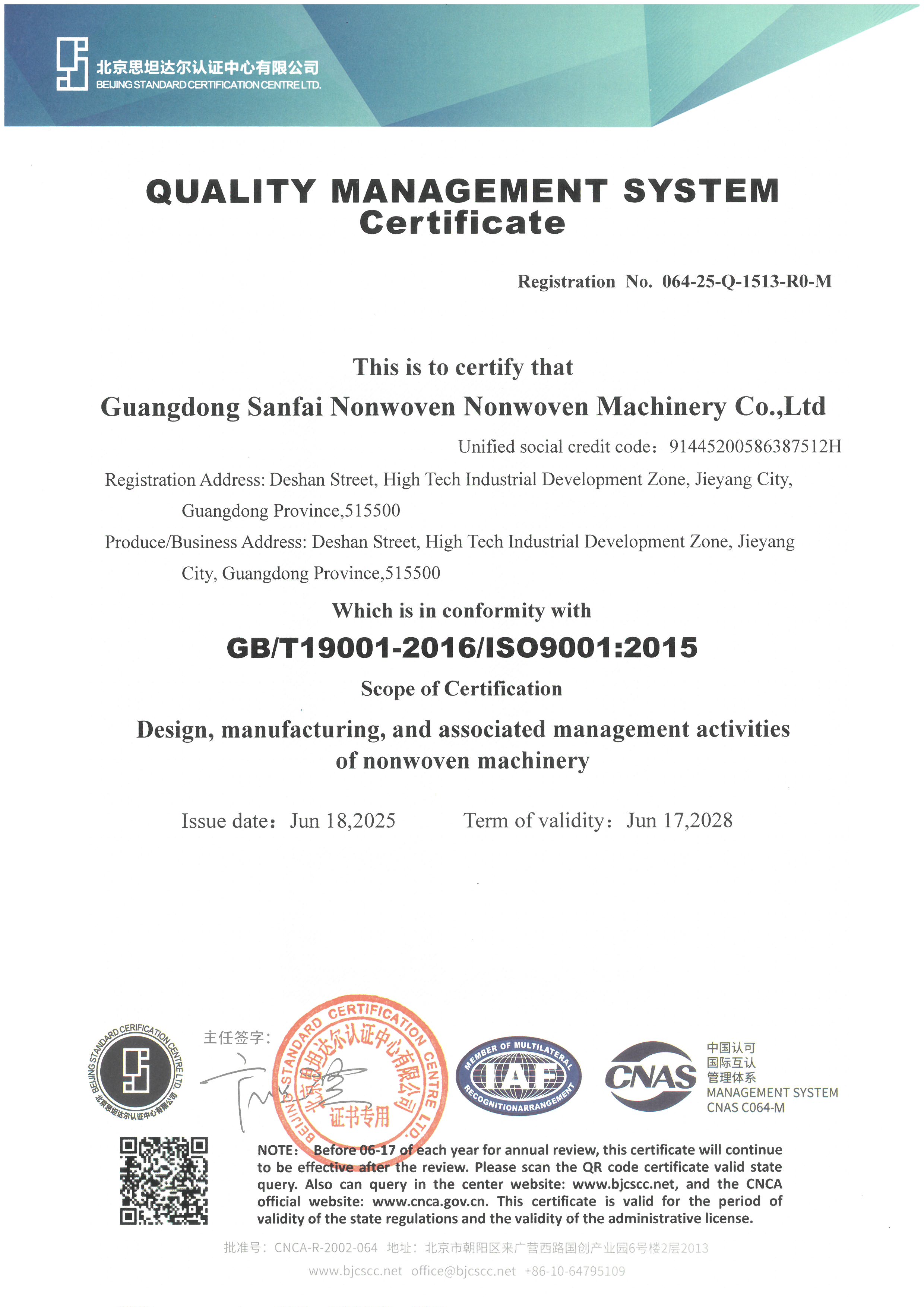 GUANGDONG SANFAI NONWOVEN MACHINERY CO., LTD.